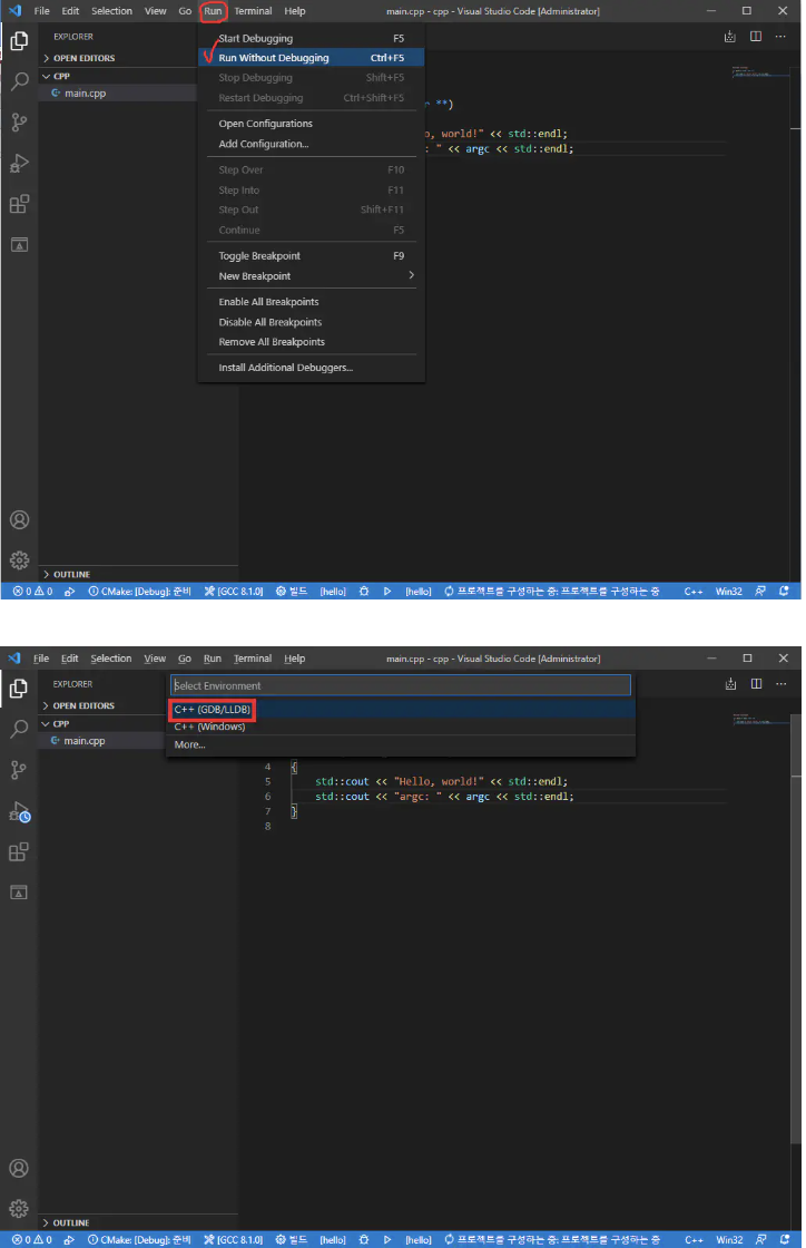 실행을 하실 때, main.cpp가 활성화된 상태에서 실행하세요.