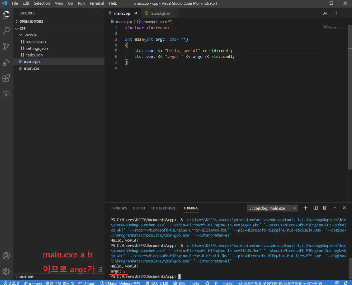 이 방법을 통해 자동으로 만들어진 launch.json 파일은 “활성화된 파일의 이름.exe”를 실행합니다.