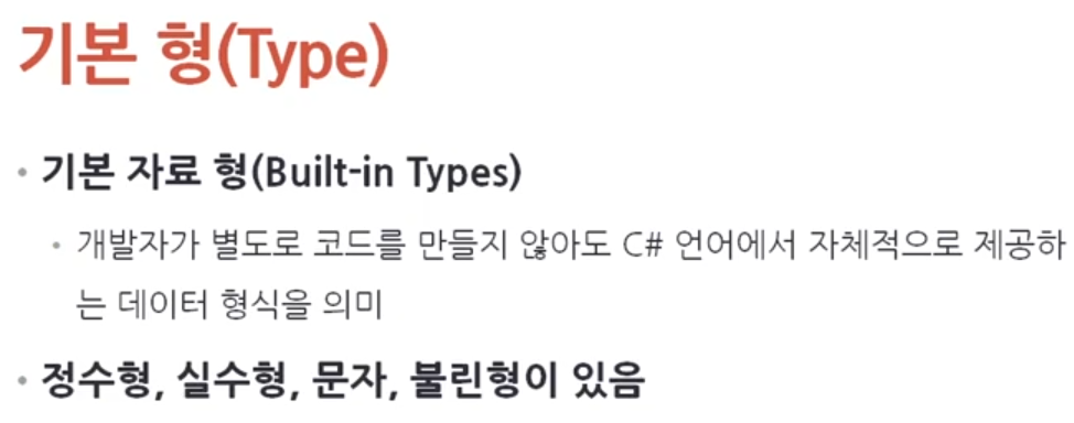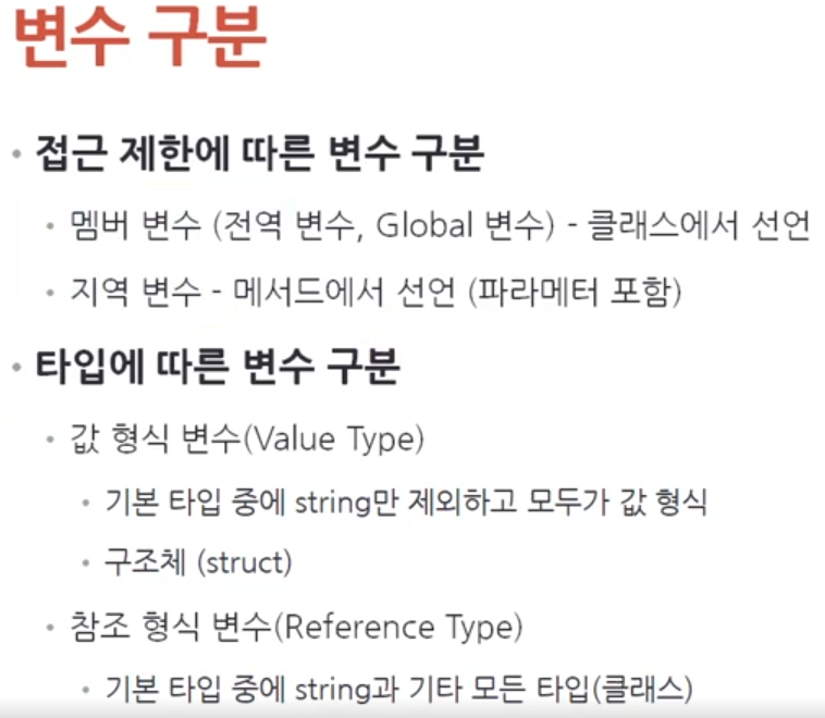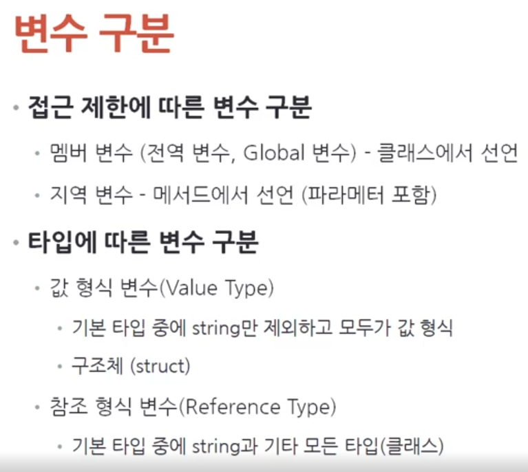 [C#] 기본타입, 변수개념/종류, 클래스, 메서드 변수선언