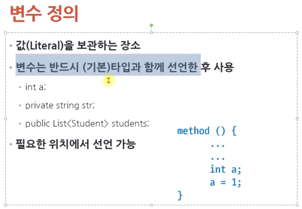 *옛날에는 필요한 변수를 위에 쭉 나열해놓고 사용했지만, 요즘에는 변수를 필요할때 선언해서 사용한다