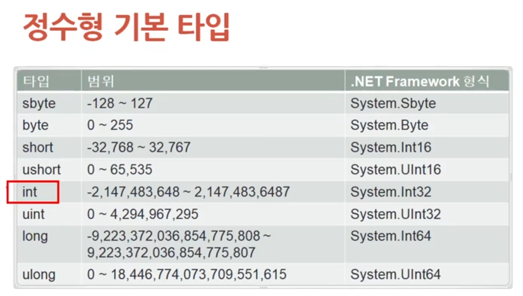 * C#에선 거의 백발백중 Int밖에 안쓴다.