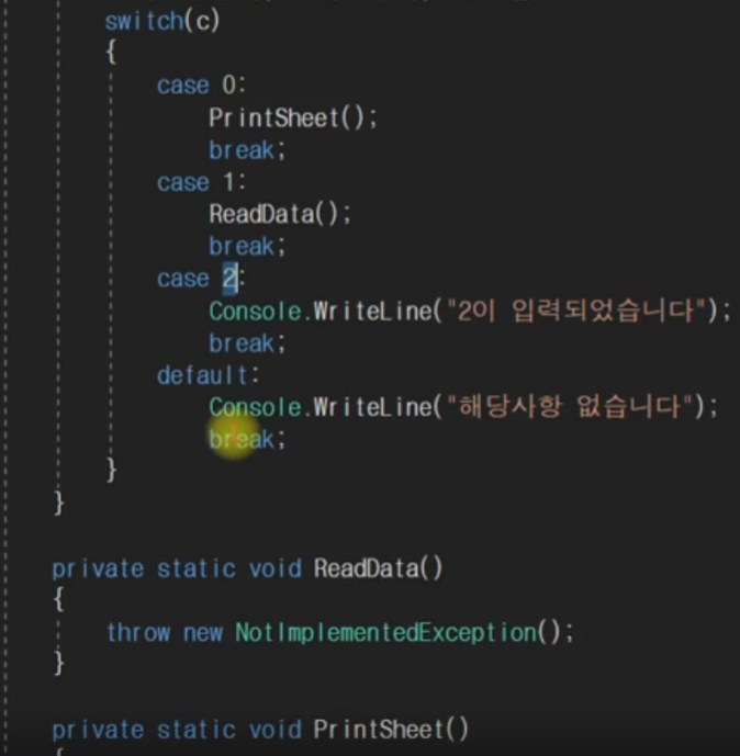실행할것은 따로빼서 최대한 switch문은 간결하게 해두는것이 유지보수에 좋다
