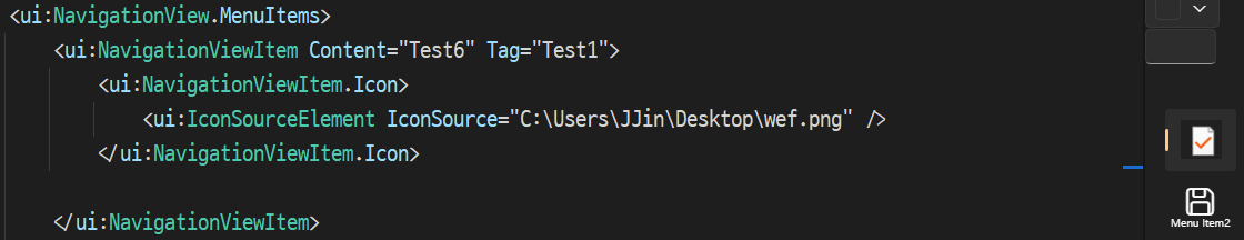 <ui:NavigationViewItem Content="Test6" Tag="Test1">